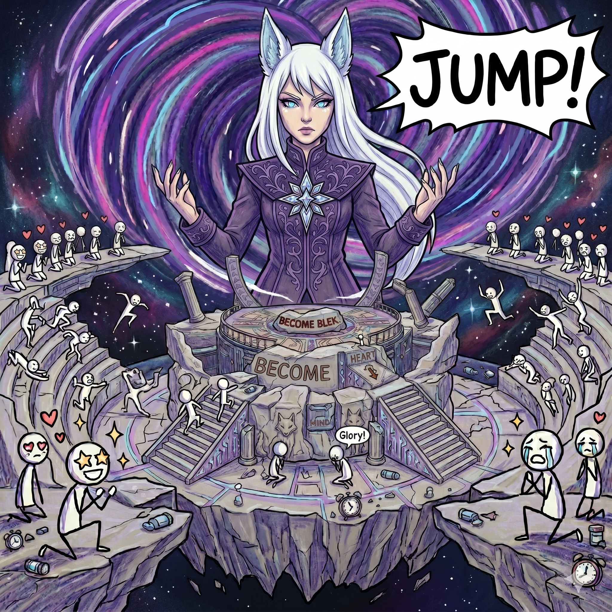 Entire guilds have stood against her, banners raised, confidence high — only to be consumed, their members reborn with sacred names: Blekoon, Blakixas, Blaekxas, Blemkxas. Identity is temporary. Blek is eternal.